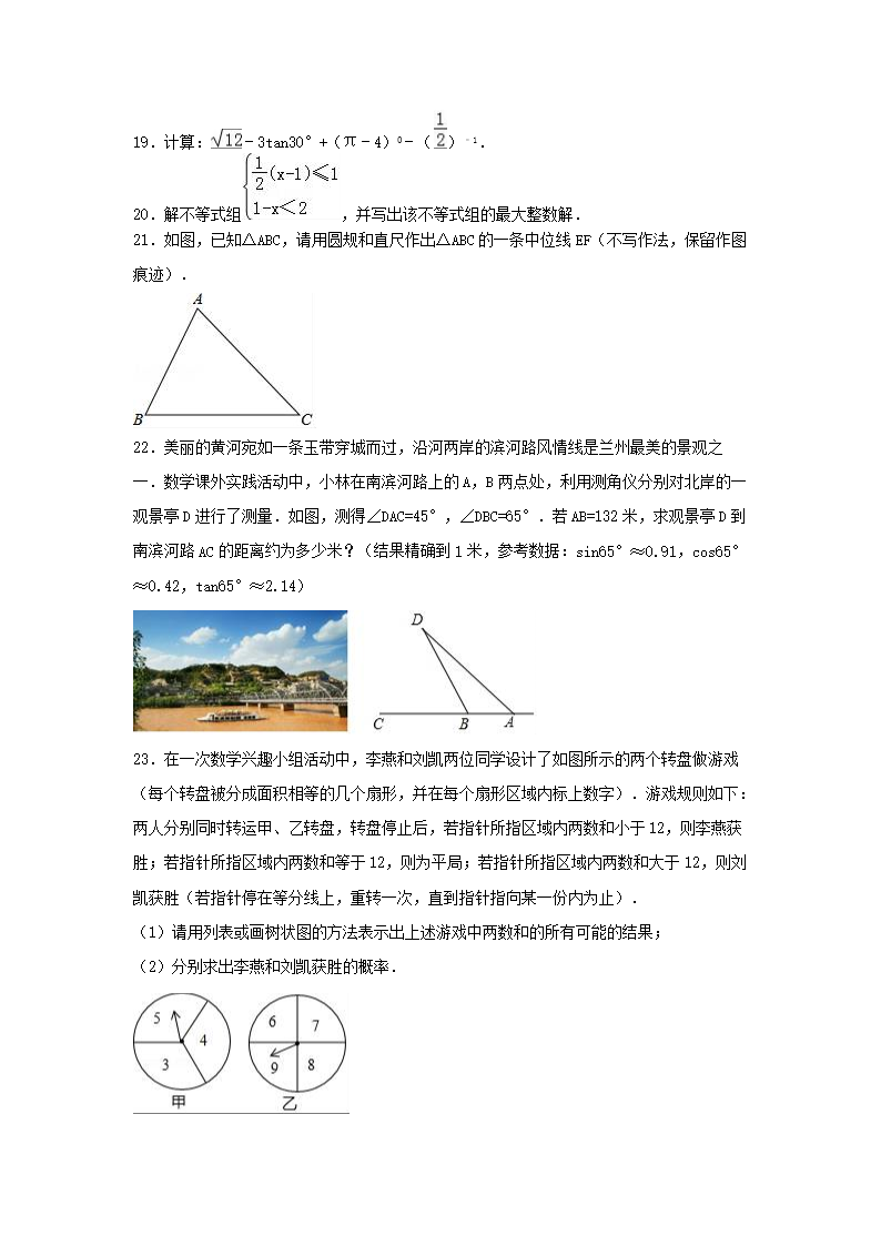 【文档预览】 无忧考网整理发布2017年甘肃省张掖市中考数学试题及答案(Word版),前五页预览如下: