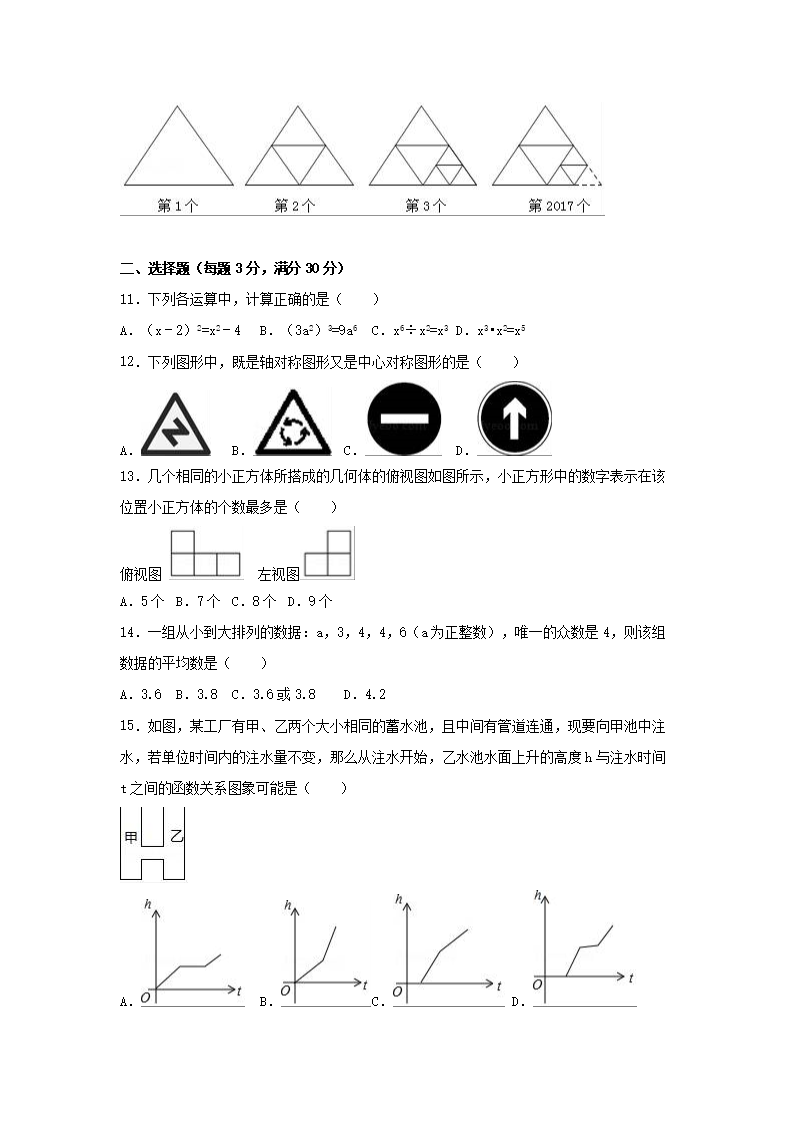 【文档名称】 2017年黑龙江省鹤岗市中考数学试题及答案(Word版).doc