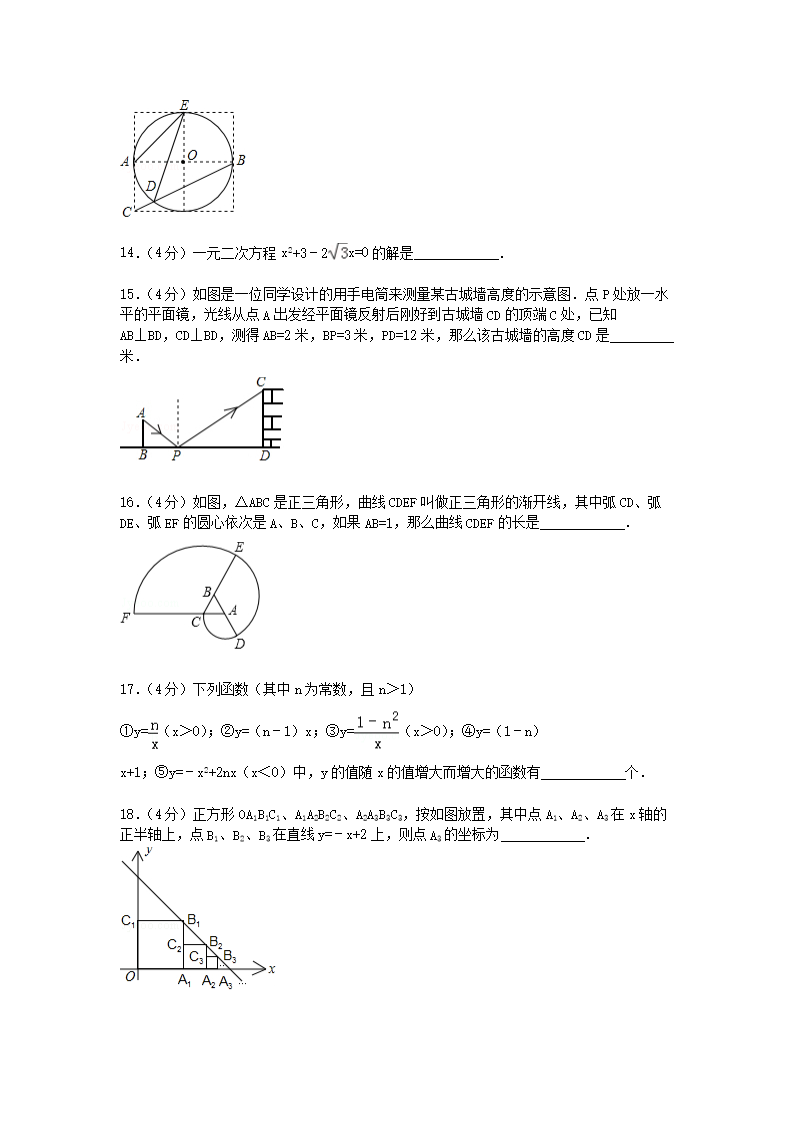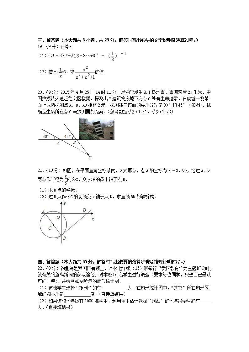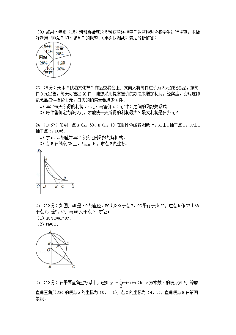 【文档名称】 2015年甘肃省天水市中考数学试题及答案(Word版).doc