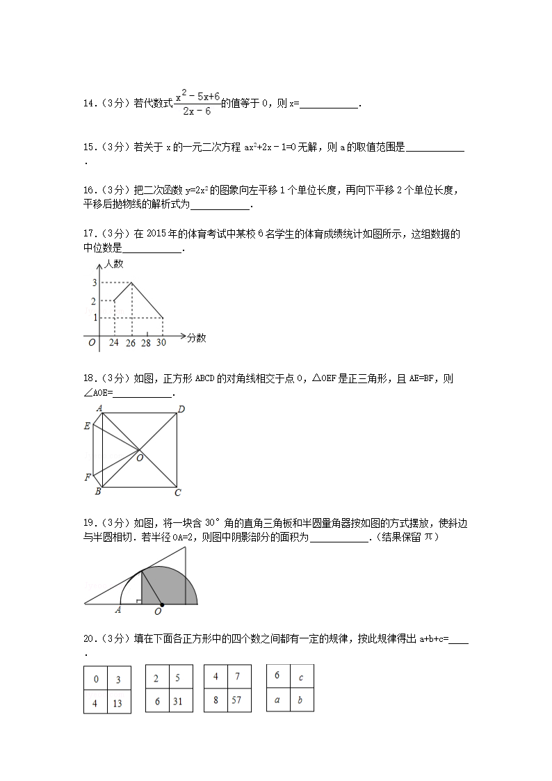 【文档名称】 2015年黑龙江省绥化市中考数学试题及答案(Word版).doc