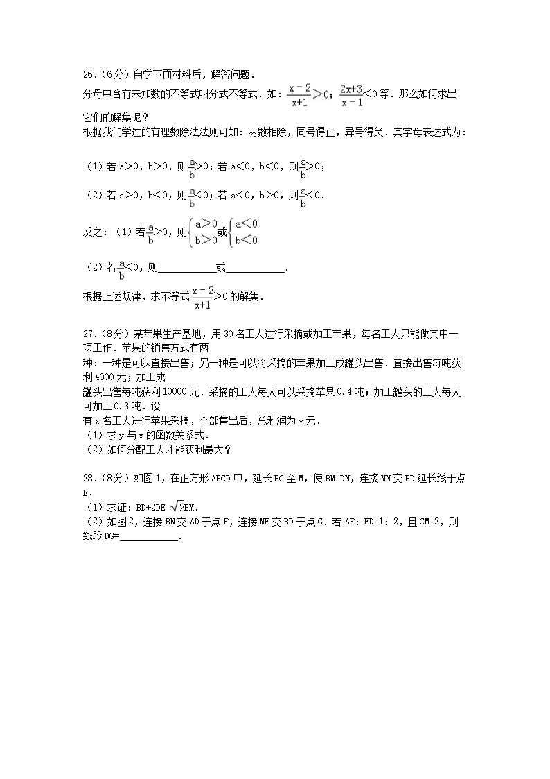 【文档预览】 无忧考网整理发布2015年黑龙江省绥化市中考数学试题及答案(Word版),前五页预览如下: