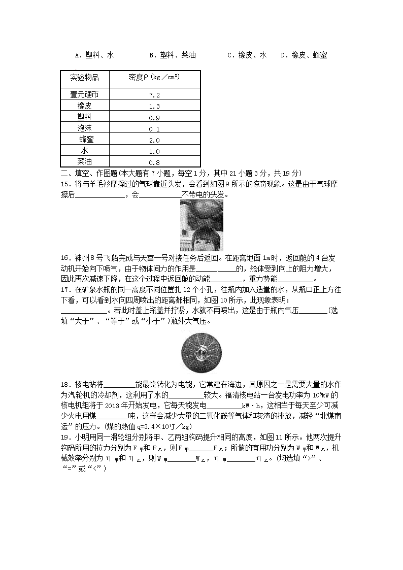 【文档名称】 2012年福建省福州市中考物理真题及答案(Word版).doc