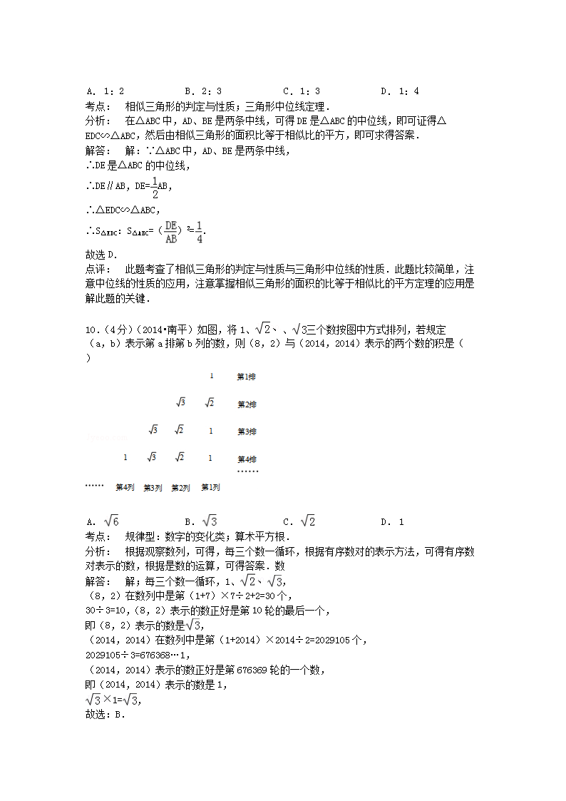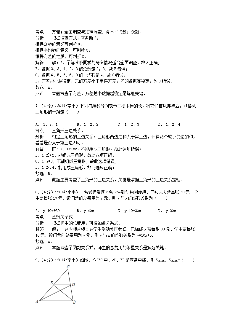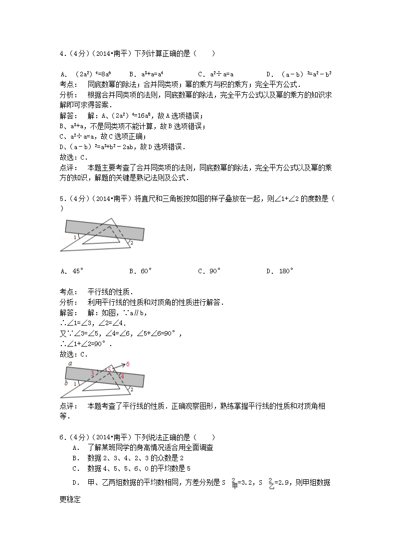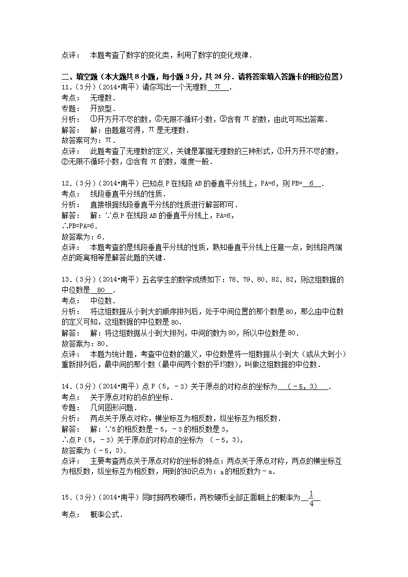 【文档名称】 2014年福建省南平市中考数学真题及答案(Word版).doc