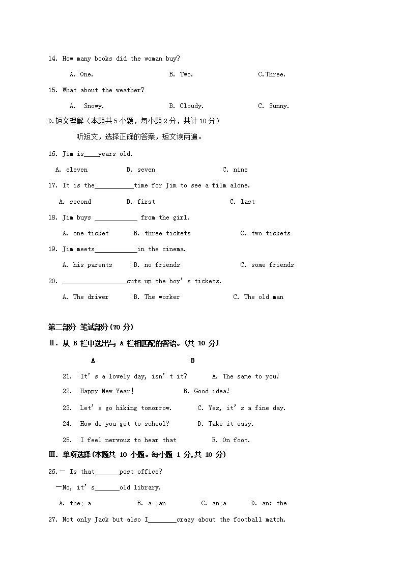 【文档预览】 无忧考网整理发布2019新疆中考英语真题及答案(Word版),前五页预览如下: