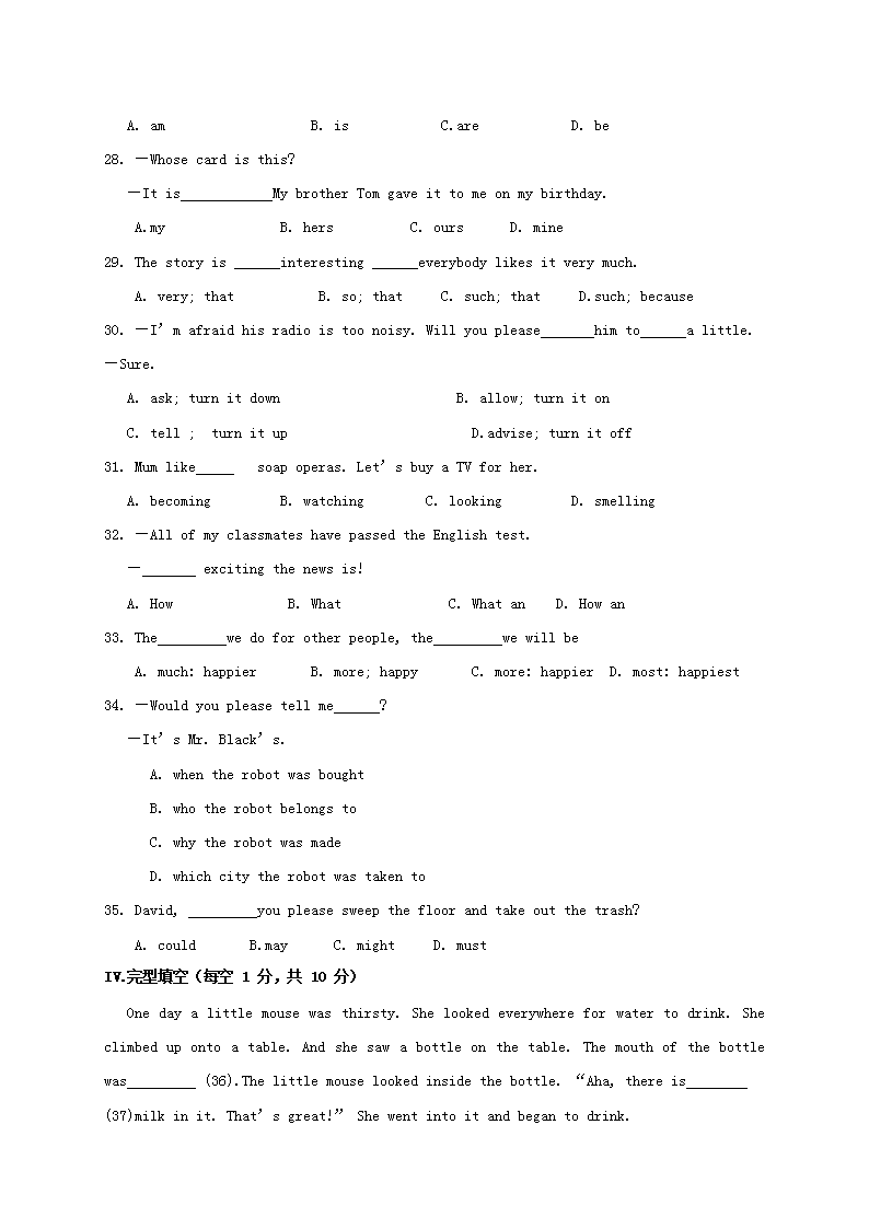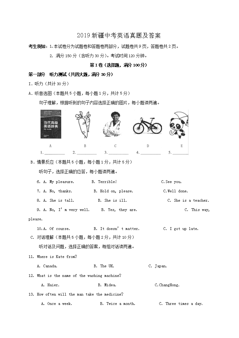 【文档名称】 2019新疆中考英语真题及答案(Word版).doc