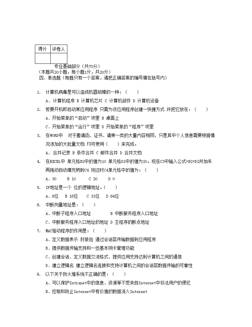 【文档名称】 社保险中心计算机专业招聘笔试真题(Word版).doc