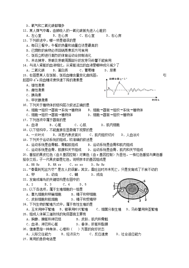 【文档名称】 2016新疆中考生物真题及答案(Word版).doc