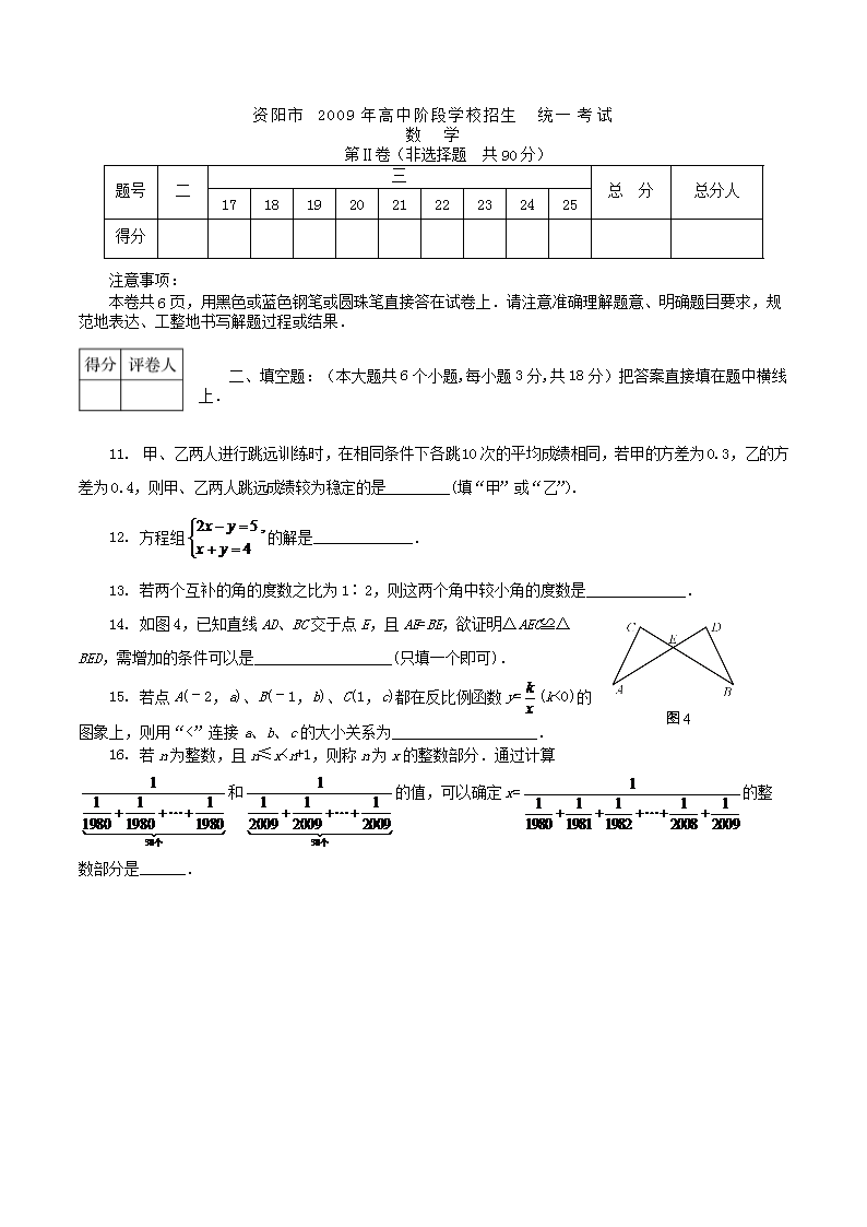 【文档名称】 2009年四川省资阳市中考数学真题及答案(Word版).doc