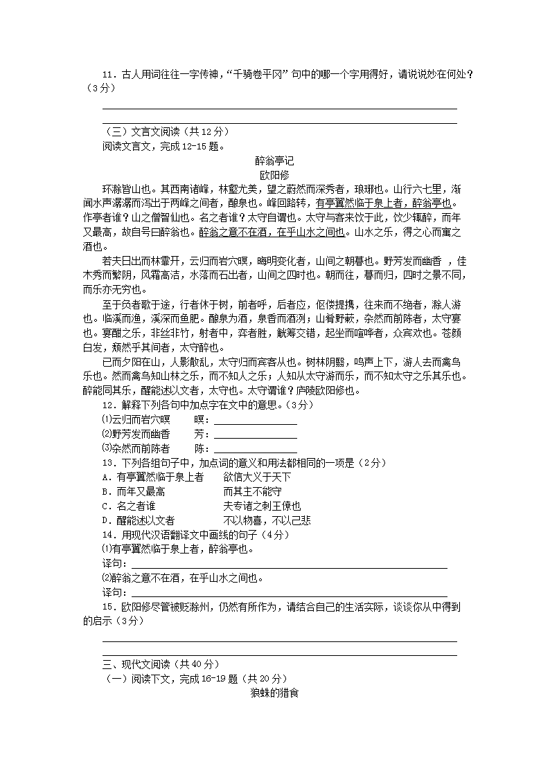 【文档名称】 2015新疆中考语文真题及答案(Word版).doc