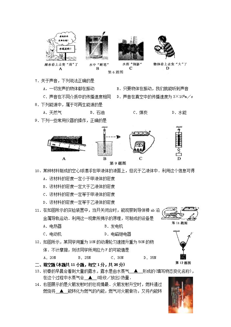 【文档名称】 2010江苏省苏州市中考物理真题及答案(Word版).doc