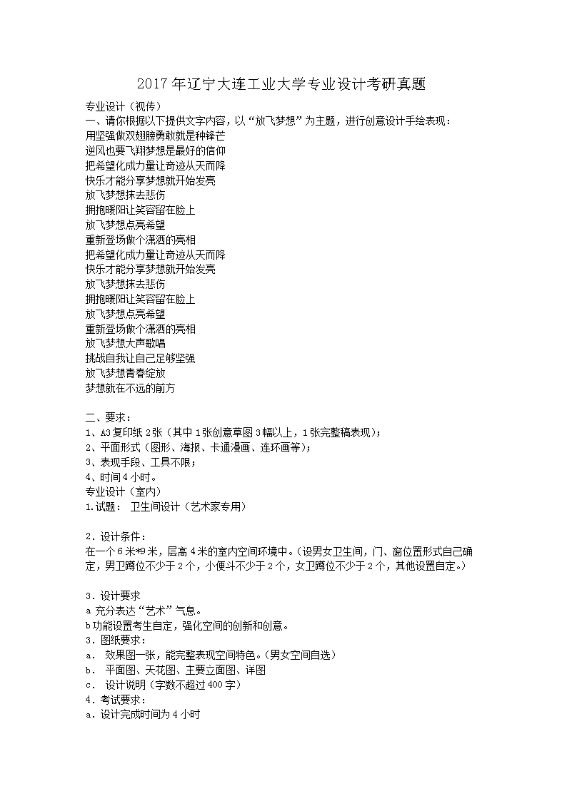 【文档名称】 2017年辽宁大连工业大学专业设计考研真题(Word版).doc
