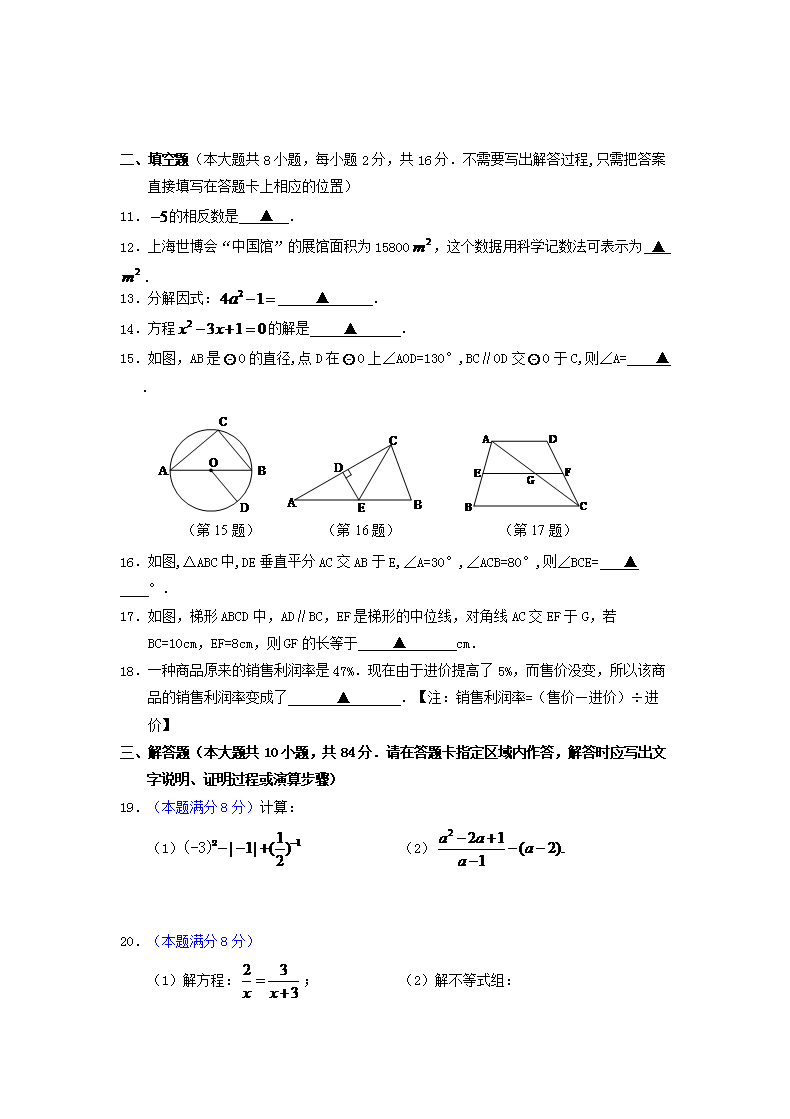 【文档名称】 2010江苏省无锡市中考数学真题及答案(Word版).doc