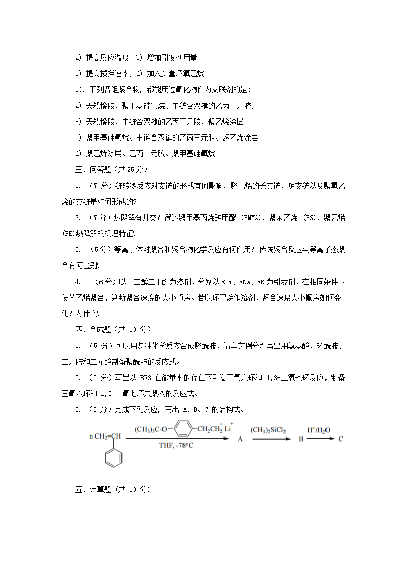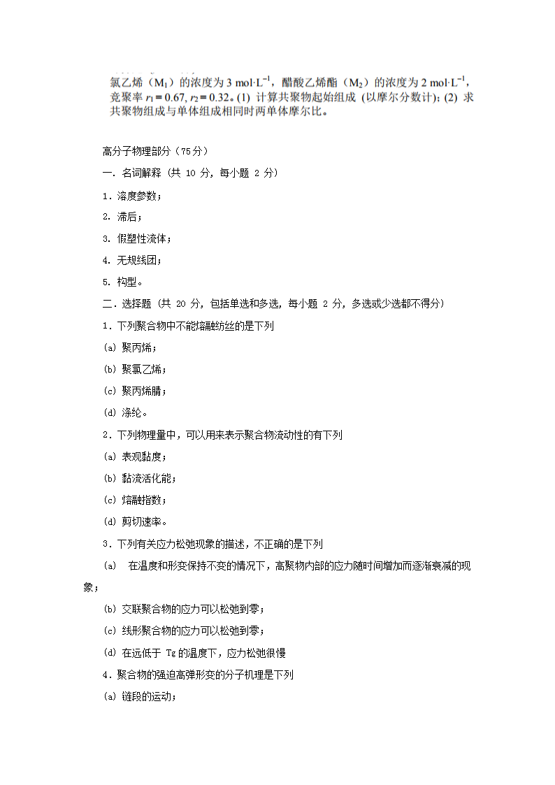【文档名称】 (北京)中国科学院大学2012年考研高分子化学与物理真题(Word版).doc