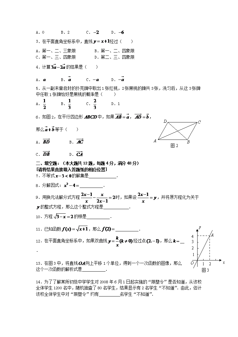 【文档名称】 2008年上海市中考数学真题及答案(Word版).doc