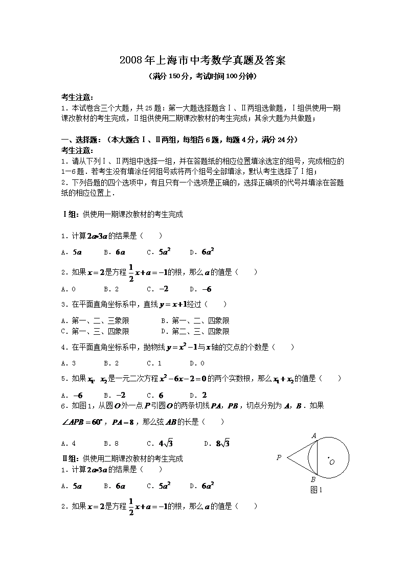 【文档预览】 无忧考网整理发布2008年上海市中考数学真题及答案(Word版),前五页预览如下:
