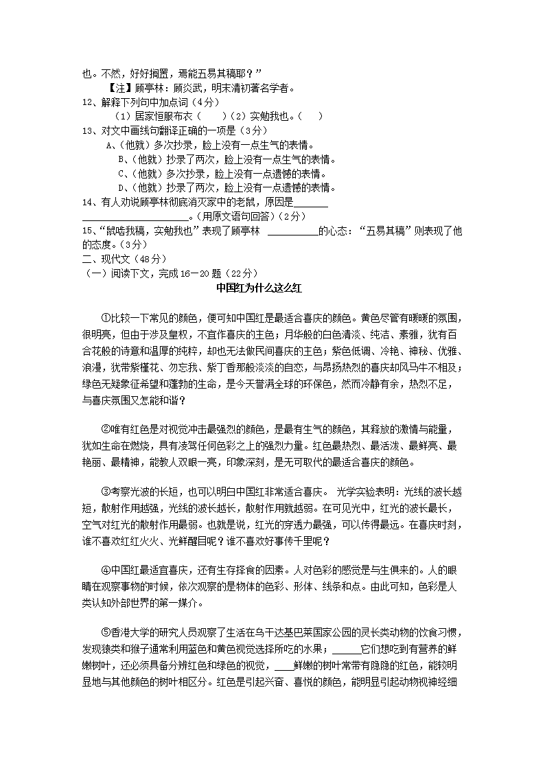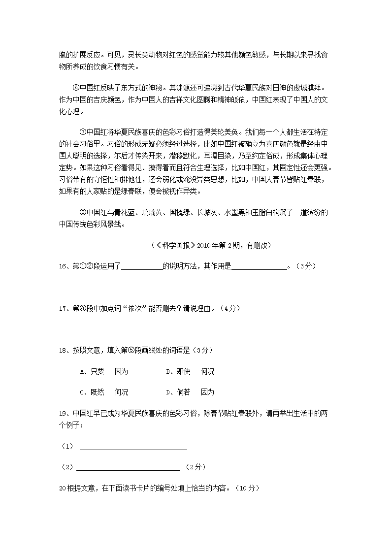 【文档预览】 无忧考网整理发布2010年上海市中考语文真题及答案(Word版),前五页预览如下: