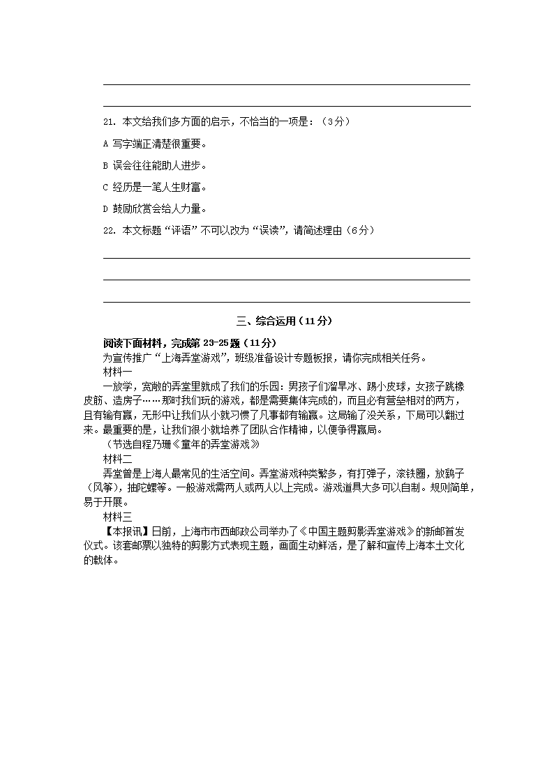 【文档名称】 2015年上海市中考语文真题及答案(Word版).doc