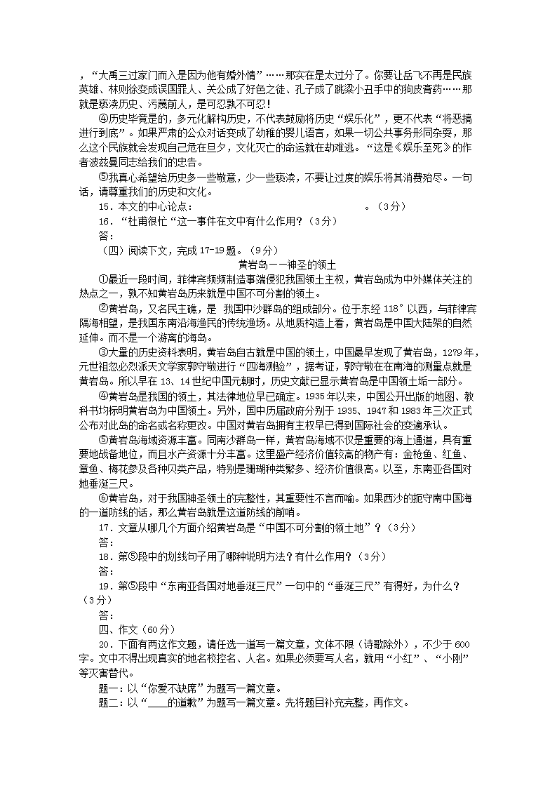 【文档预览】 无忧考网整理发布2012年福建省宁德市中考语文真题及答案(Word版),前五页预览如下: