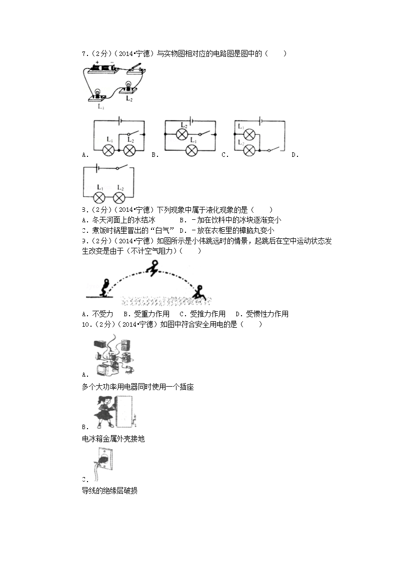 【文档名称】 2014年福建省宁德市中考物理真题及答案(Word版).doc