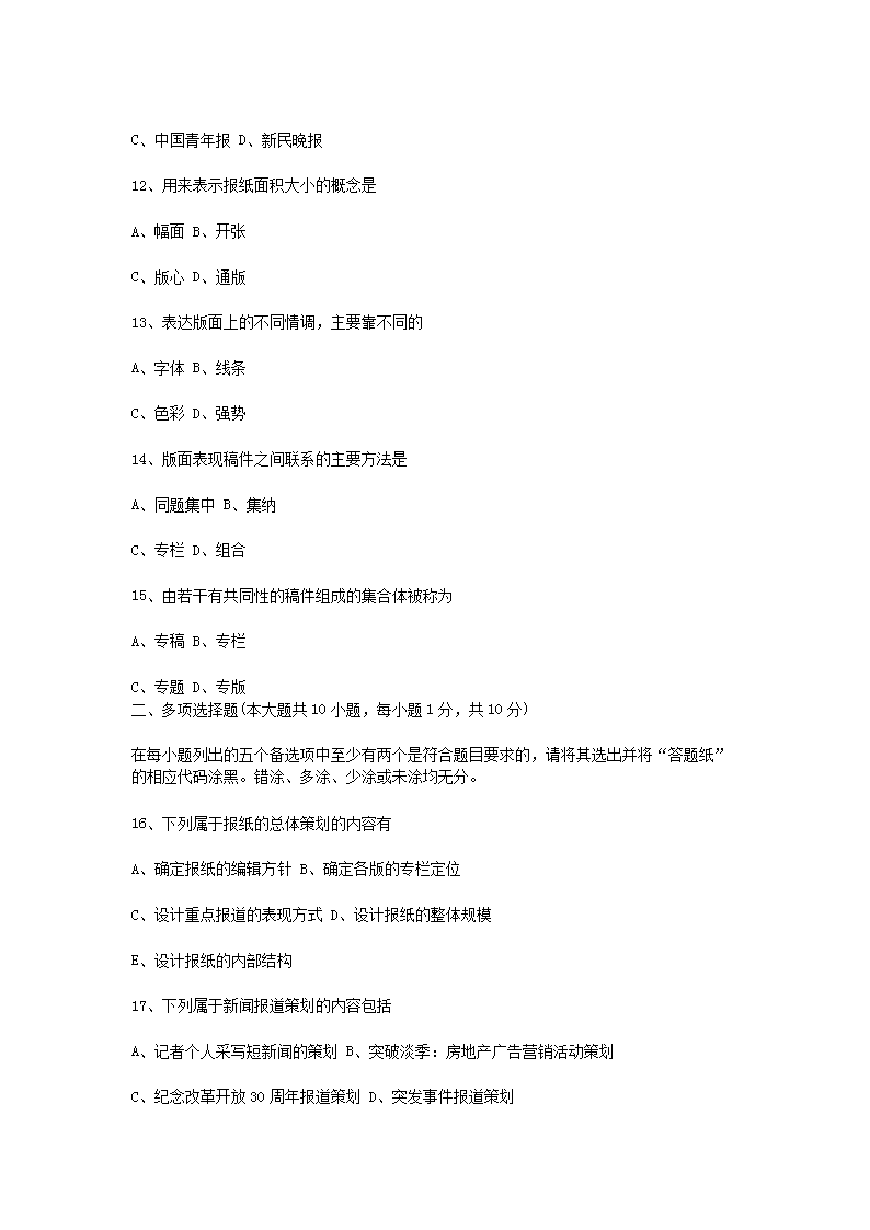 【文档名称】 2013年10月全国自考报纸新闻编辑真题(Word版).doc