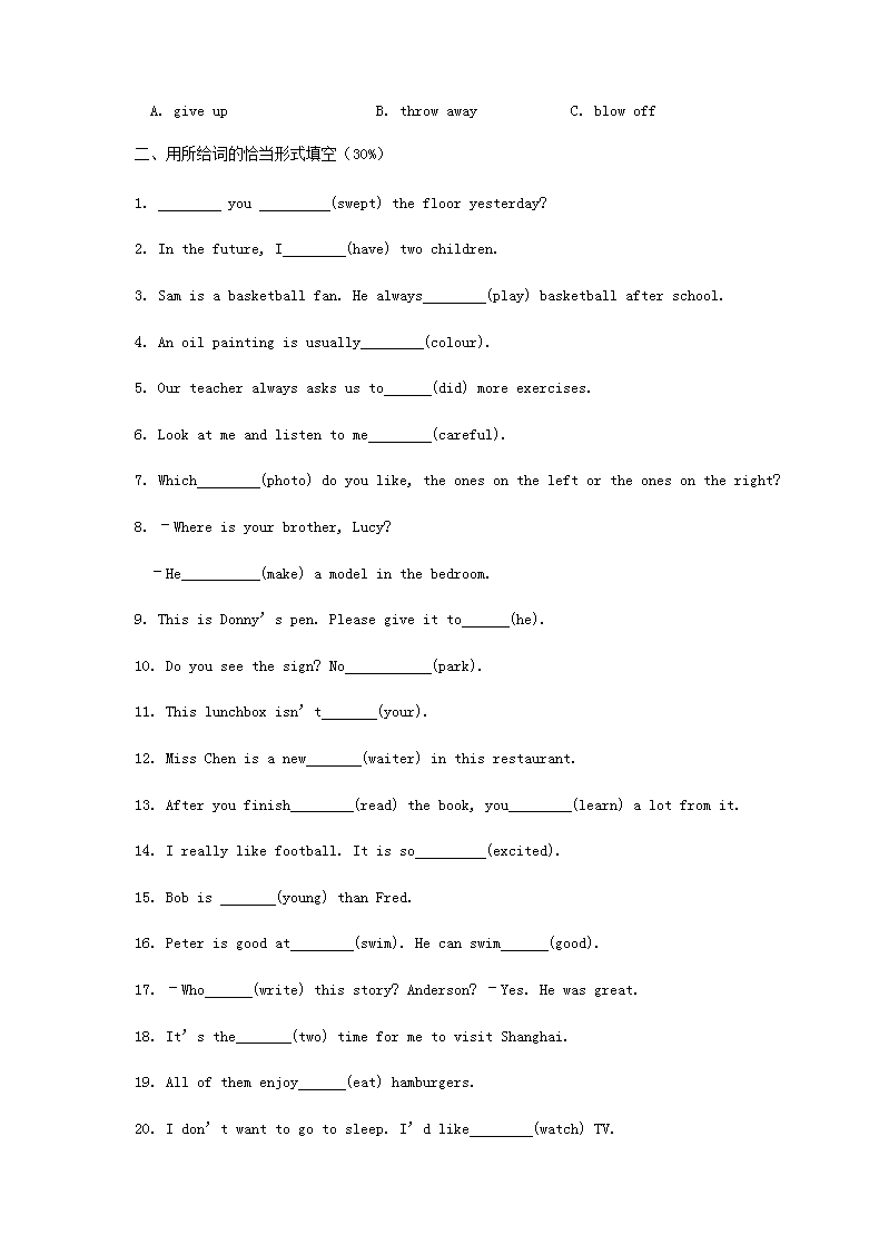 【文档预览】 无忧考网整理发布2016年湖南小升初英语真题及答案(Word版),前五页预览如下: