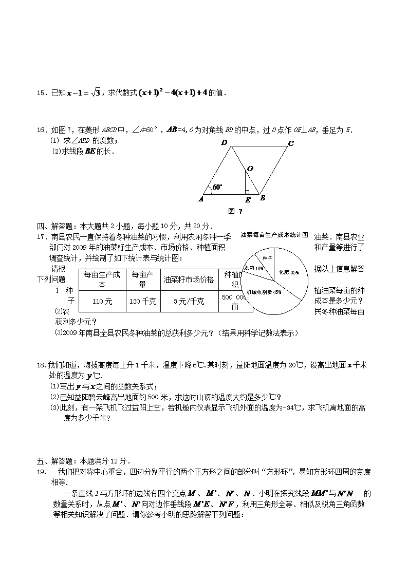 【文档预览】 无忧考网整理发布2010年湖南省益阳市中考数学真题及答案(Word版),前五页预览如下: