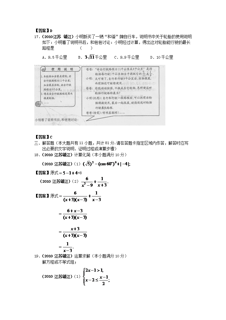 【文档预览】 无忧考网整理发布2010江苏省镇江市中考数学真题及答案(Word版),前五页预览如下: