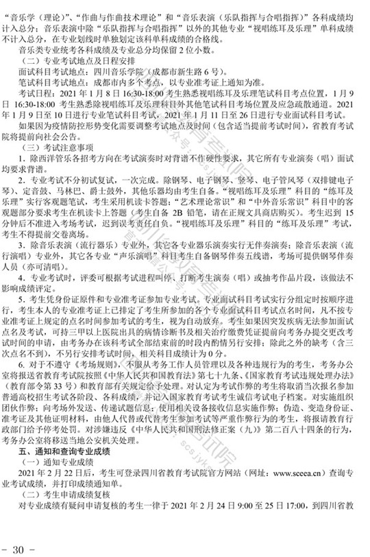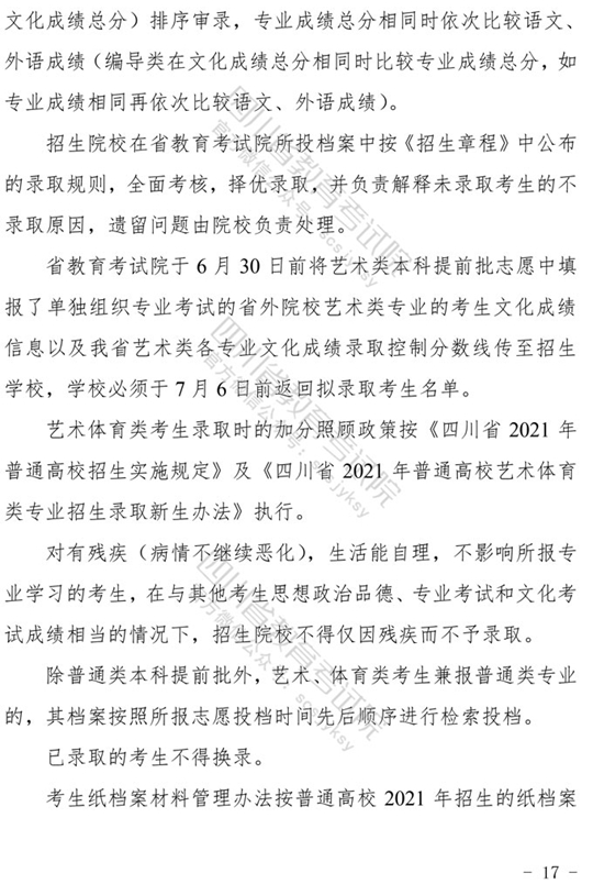 2021四川艺术体育类专业招生工作实施规定