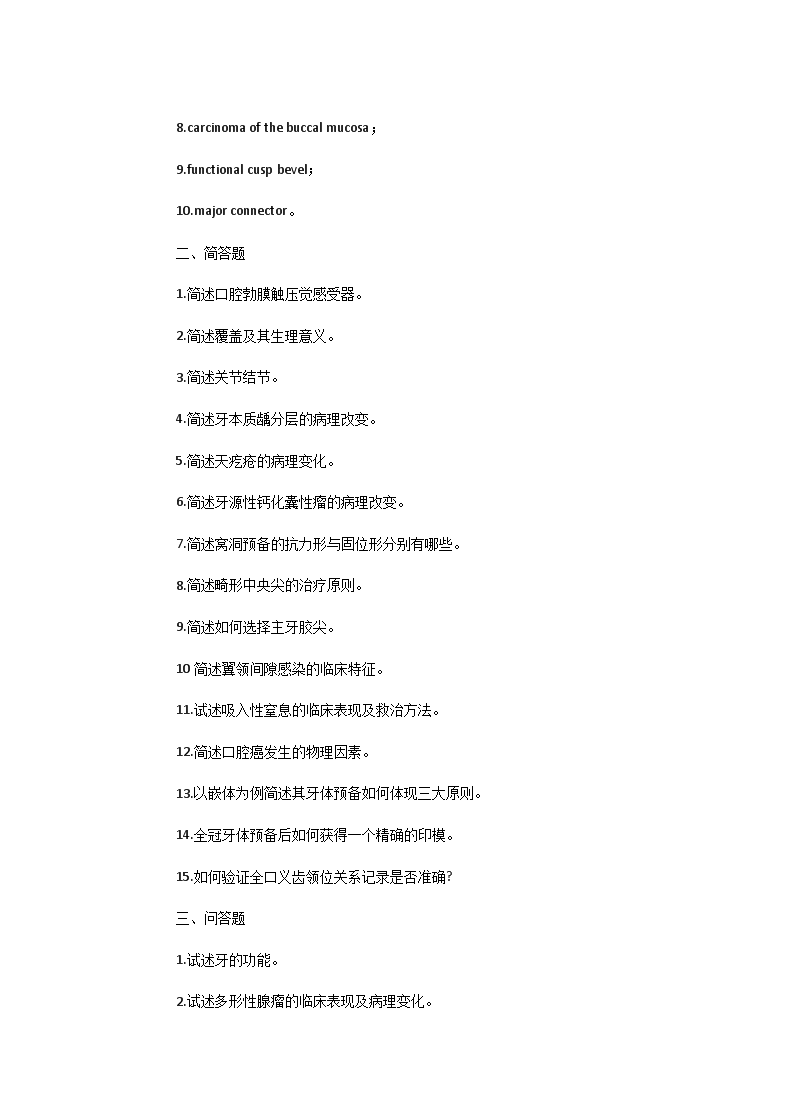 【文档名称】 2008一2018广东中山大学口腔综合考研真题(Word版).doc