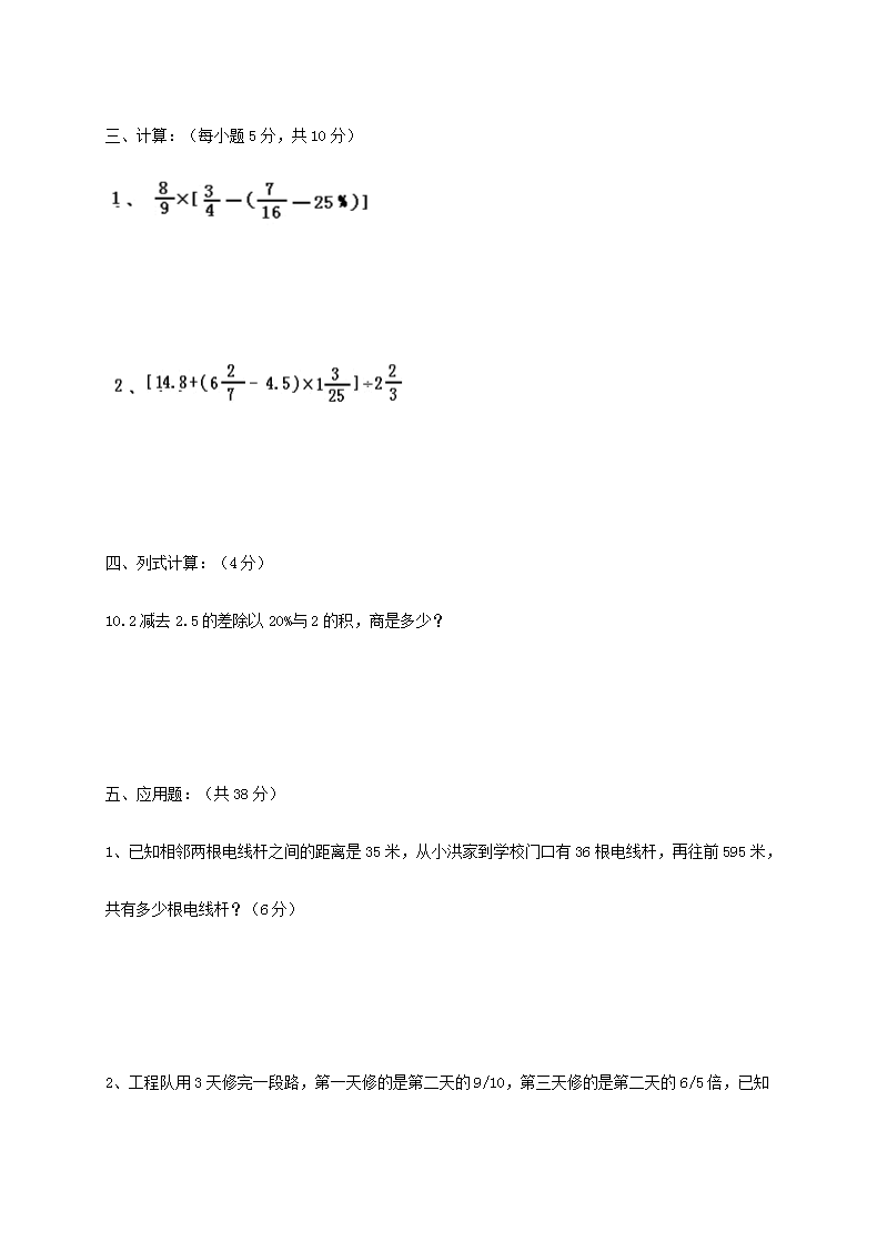 【文档名称】 2017年山东小升初数学真题及答案(Word版).doc