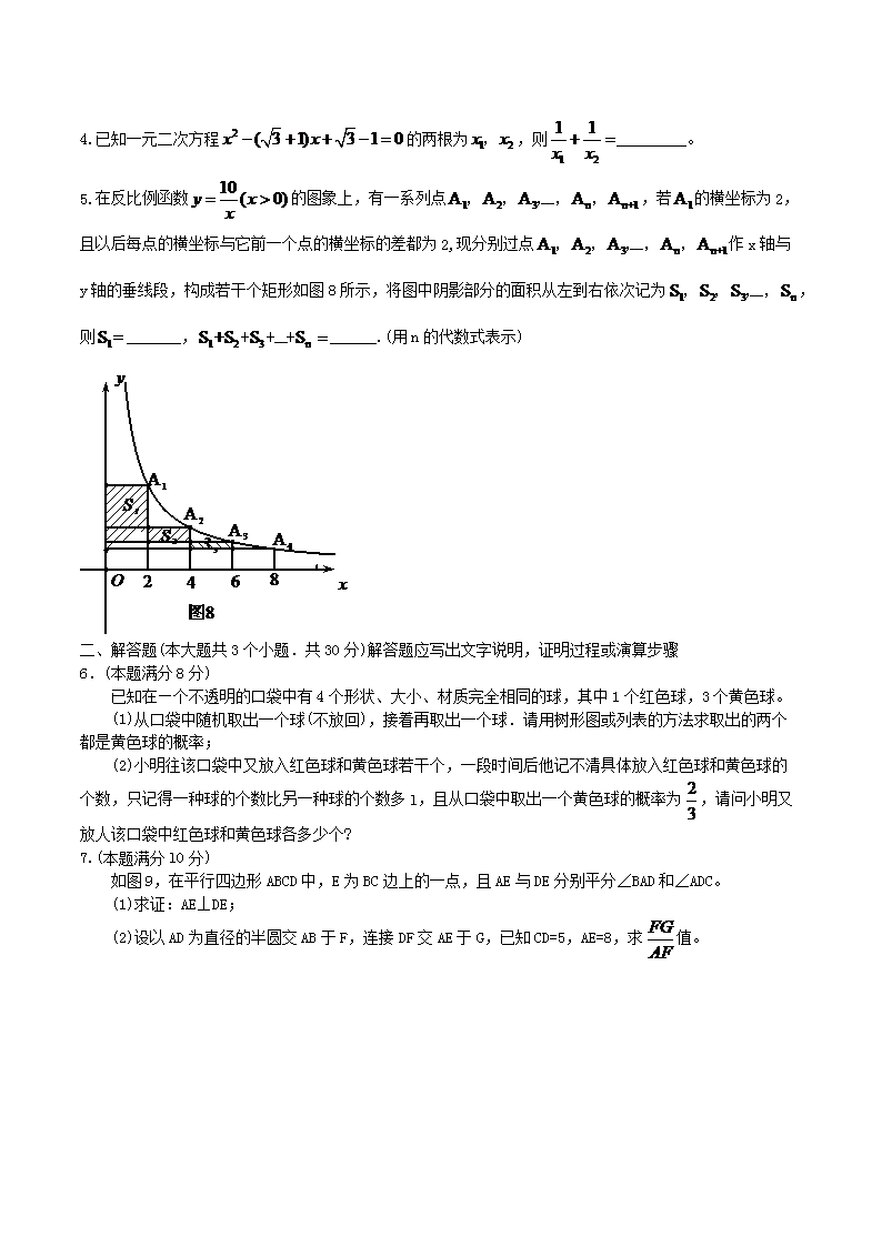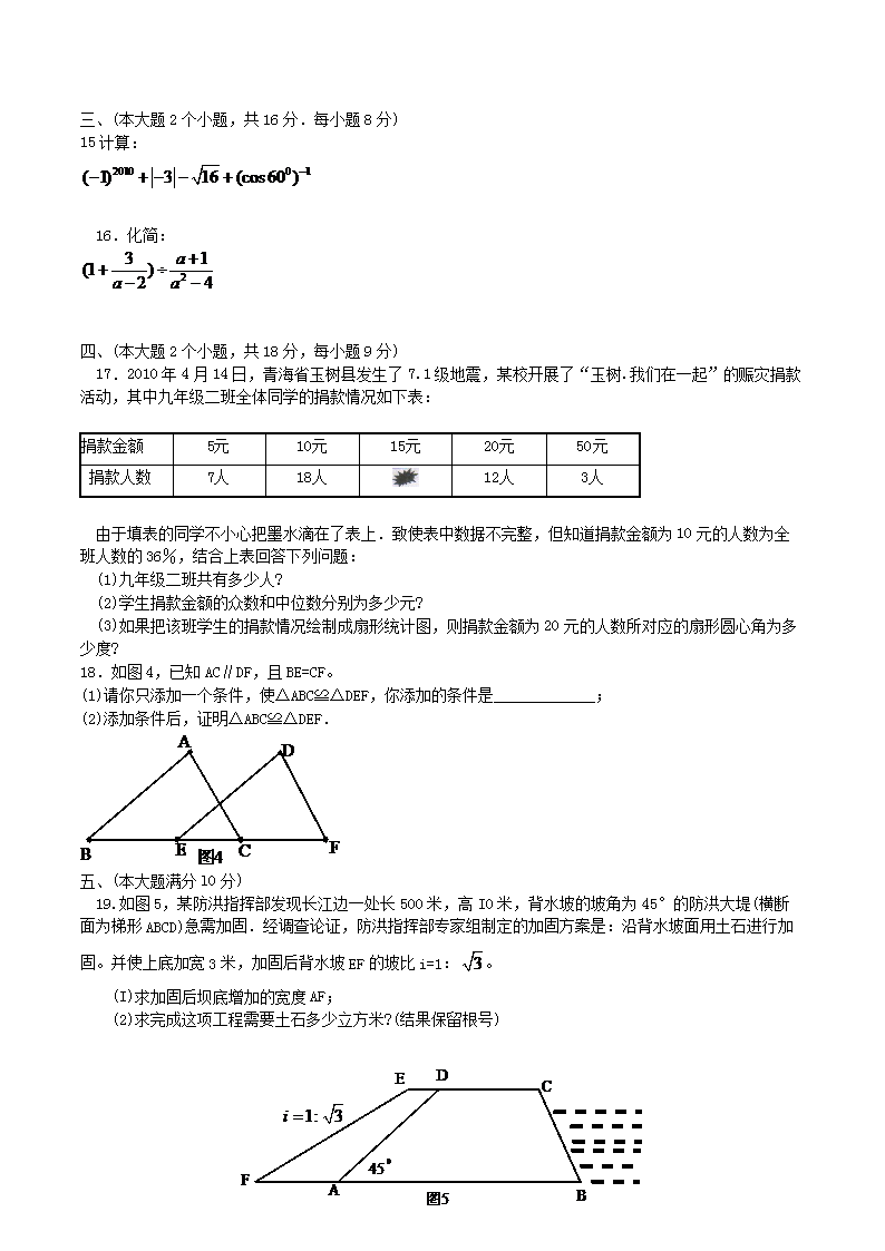 【文档预览】 无忧考网整理发布2010年四川省泸州市中考数学真题及答案(Word版),前五页预览如下: