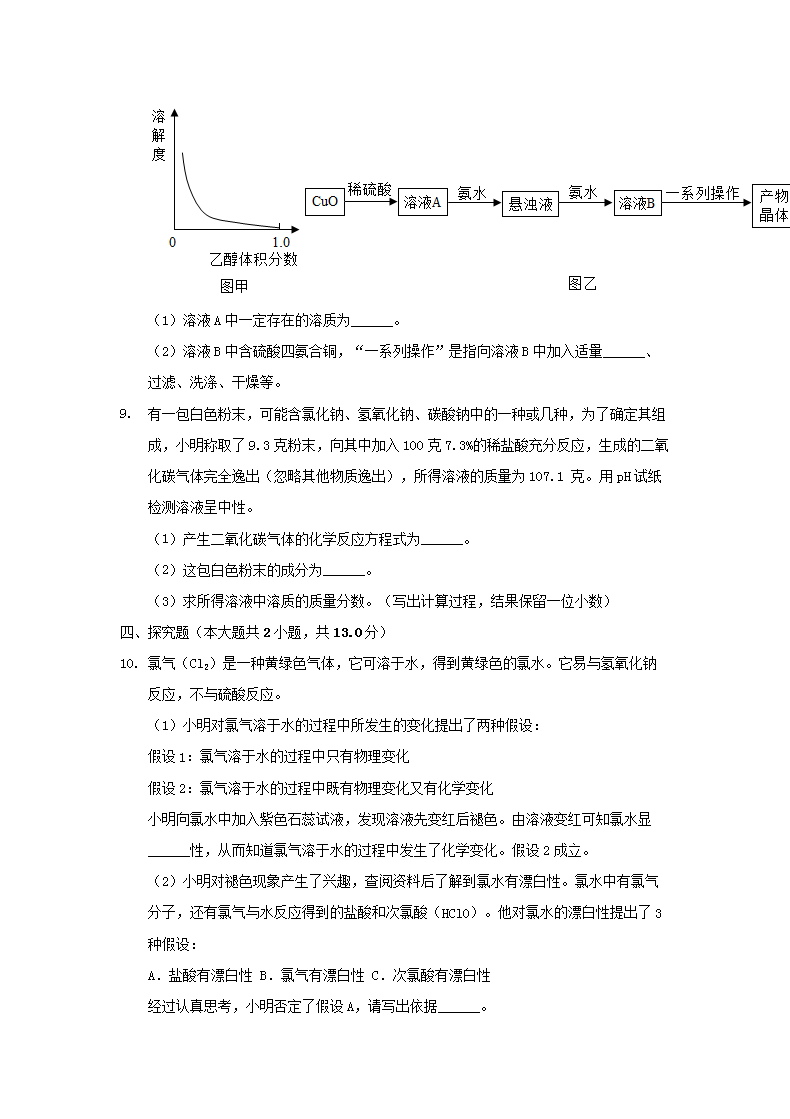 【文档名称】 2020浙江省湖州市中考化学真题及答案(Word版).doc