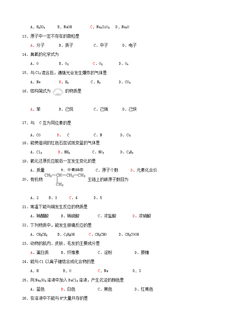 【文档名称】 2011年广西普通高中会考化学真题及答案(Word版).doc