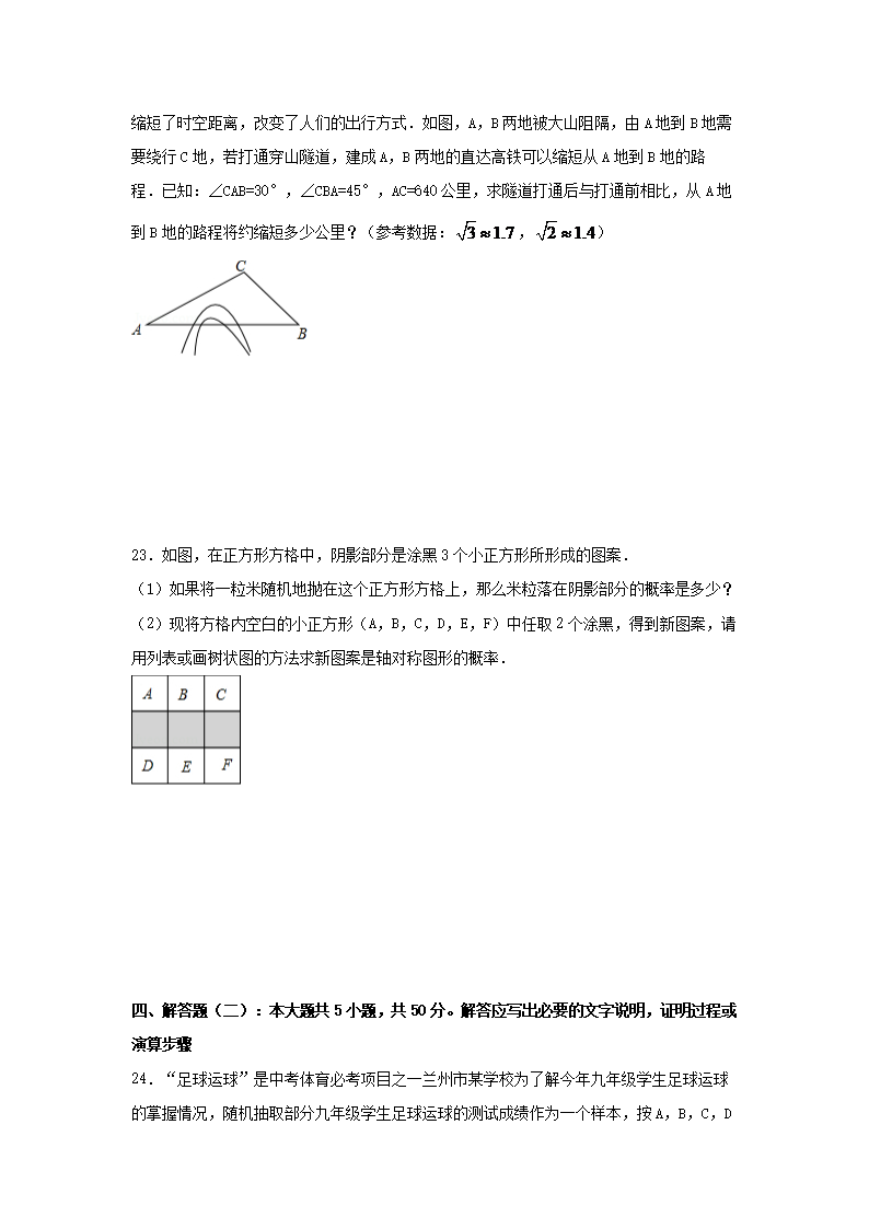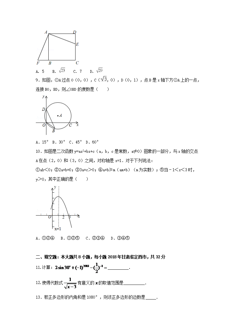 【文档名称】 2018年甘肃省临夏州中考数学试题及答案(Word版).doc