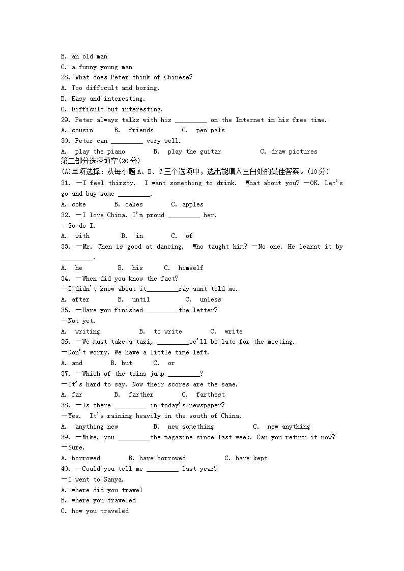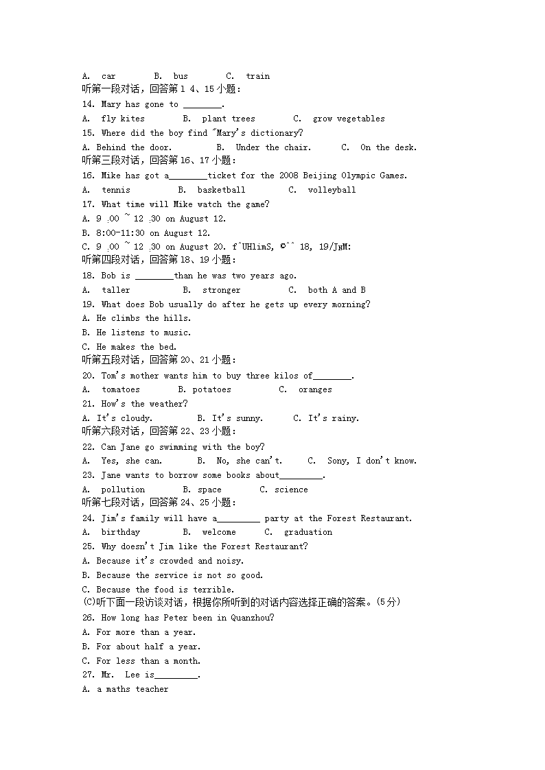 【文档名称】 2008年福建省泉州市中考英语真题及答案(Word版).doc