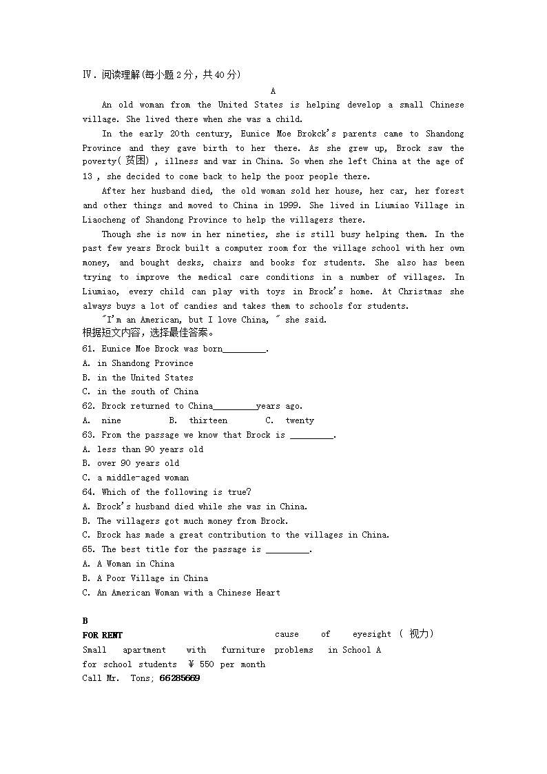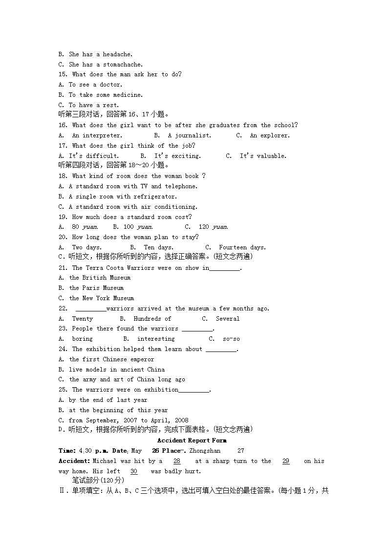 【文档名称】 2008年福建省三明市中考英语真题及答案(Word版).doc