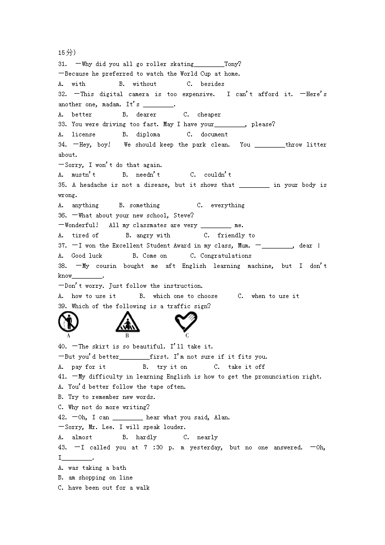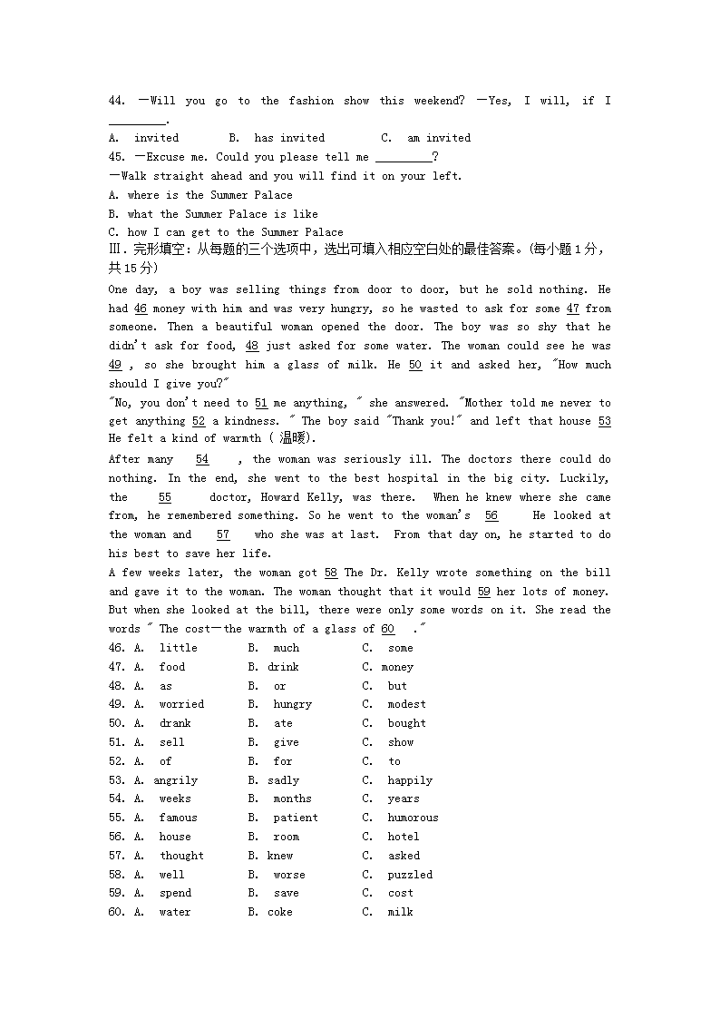 【文档预览】 无忧考网整理发布2008年福建省三明市中考英语真题及答案(Word版),前五页预览如下: