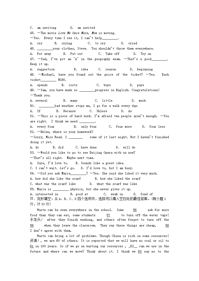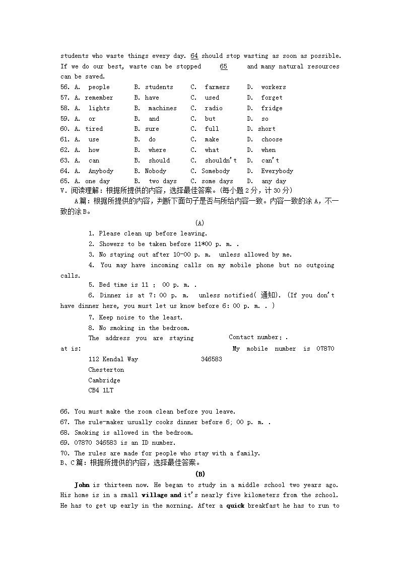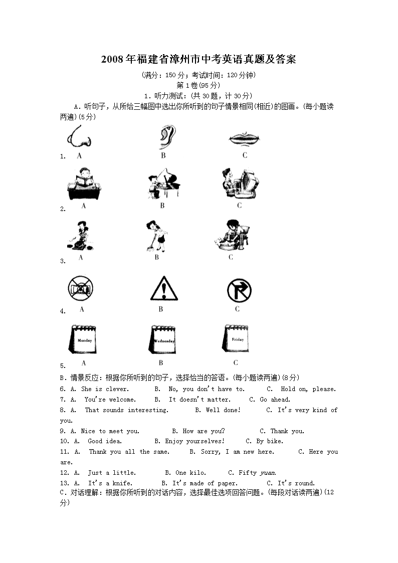 【文档名称】 2008年福建省漳州市中考英语真题及答案(Word版).doc