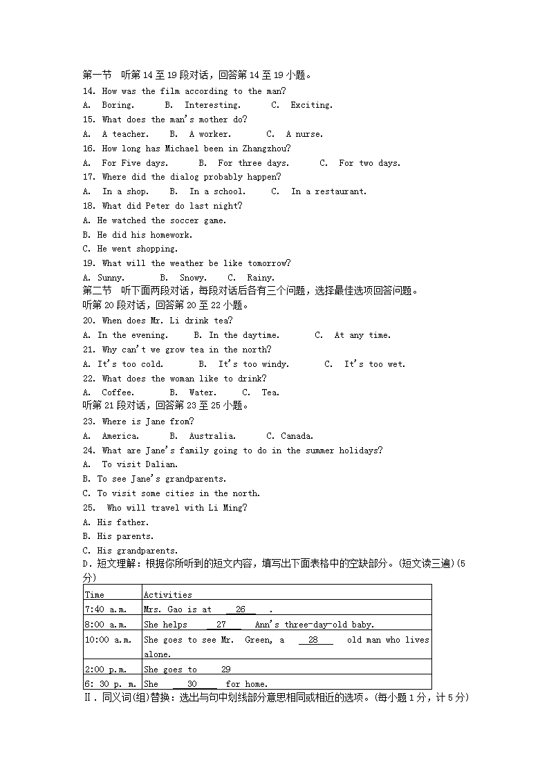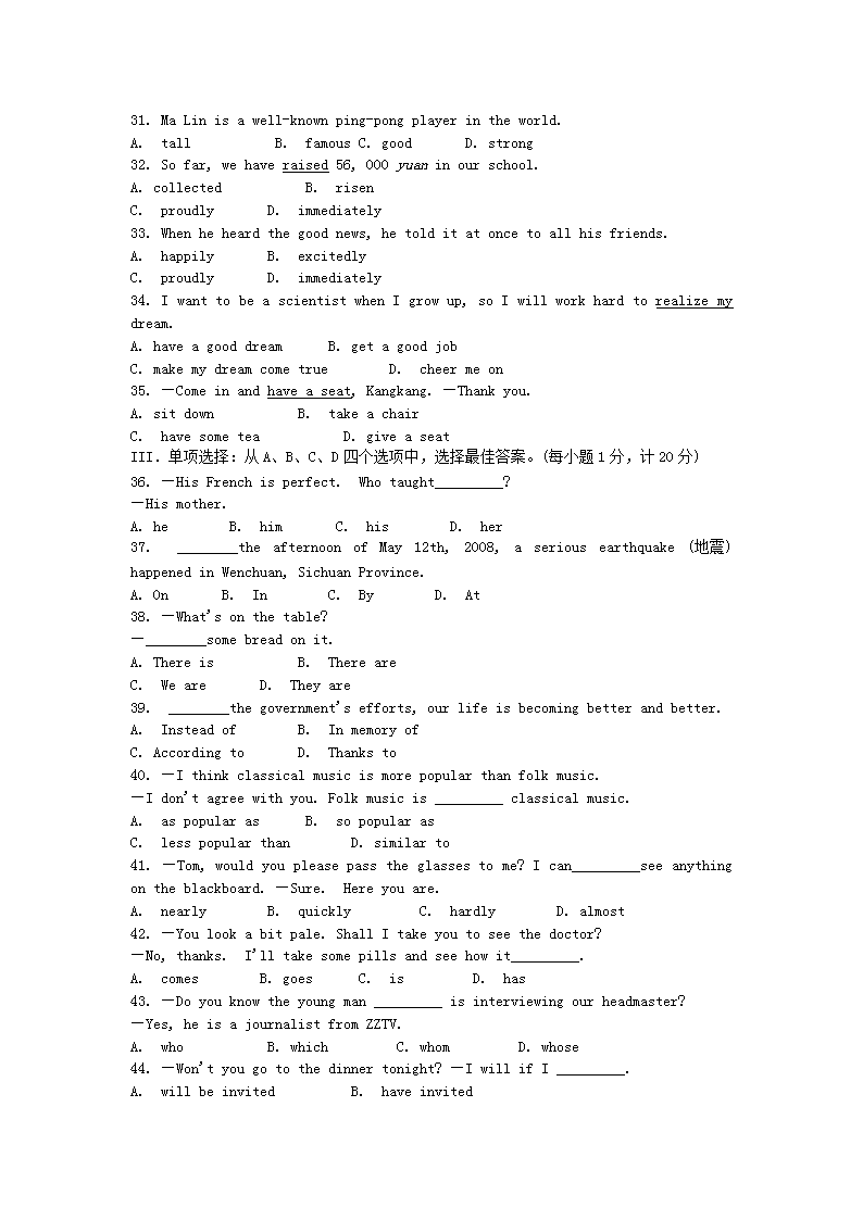【文档预览】 无忧考网整理发布2008年福建省漳州市中考英语真题及答案(Word版),前五页预览如下: