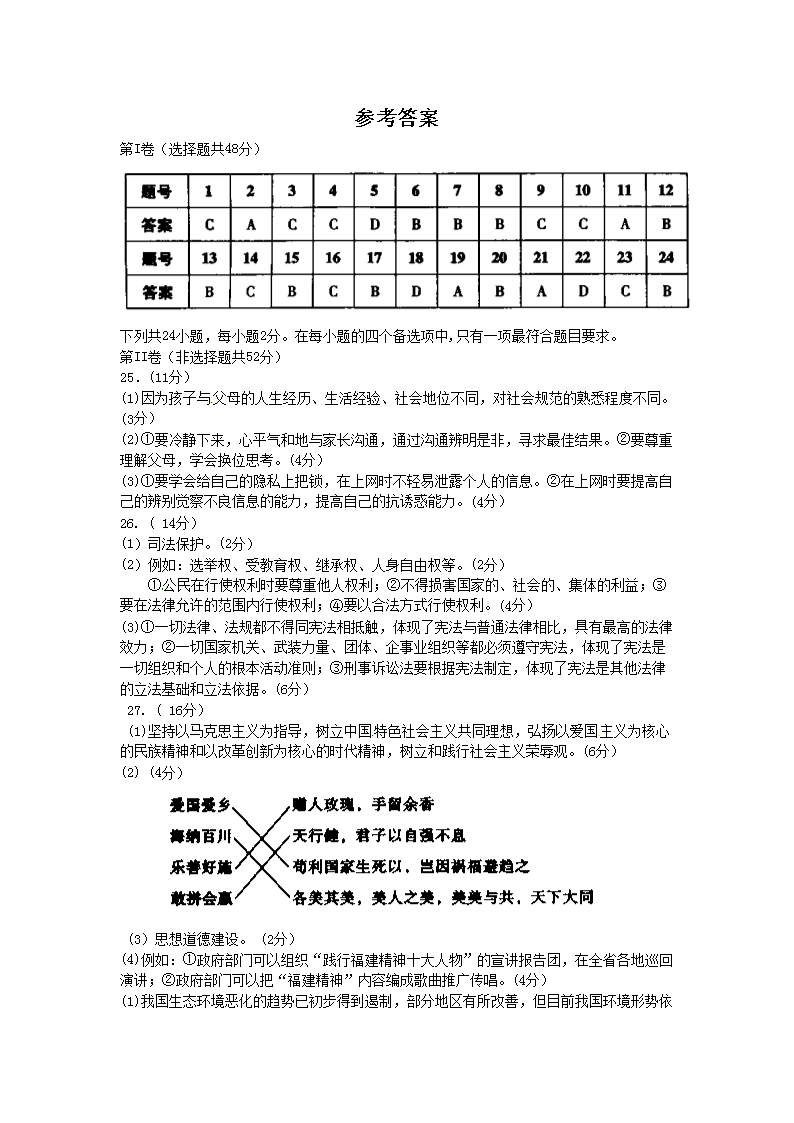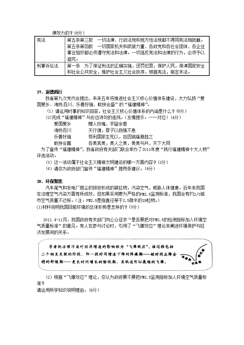 【文档名称】 2012年福建省福州市中考思想品德真题及答案(Word版).doc