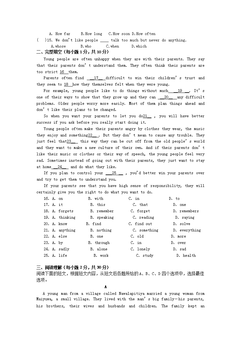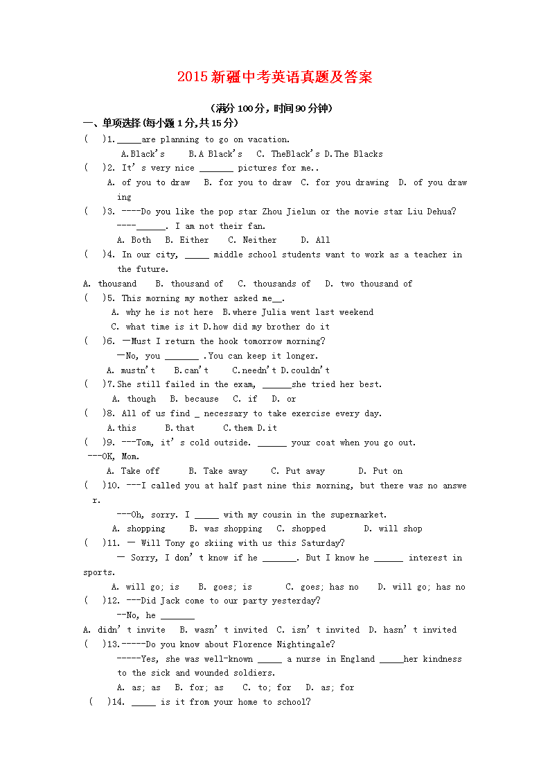 【文档名称】 2015新疆中考英语真题及答案(Word版).doc