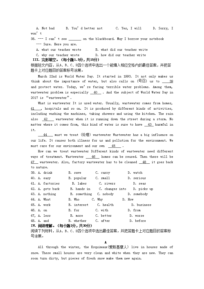 【文档预览】 无忧考网整理发布2017重庆中考英语真题及答案(Word版),前五页预览如下: