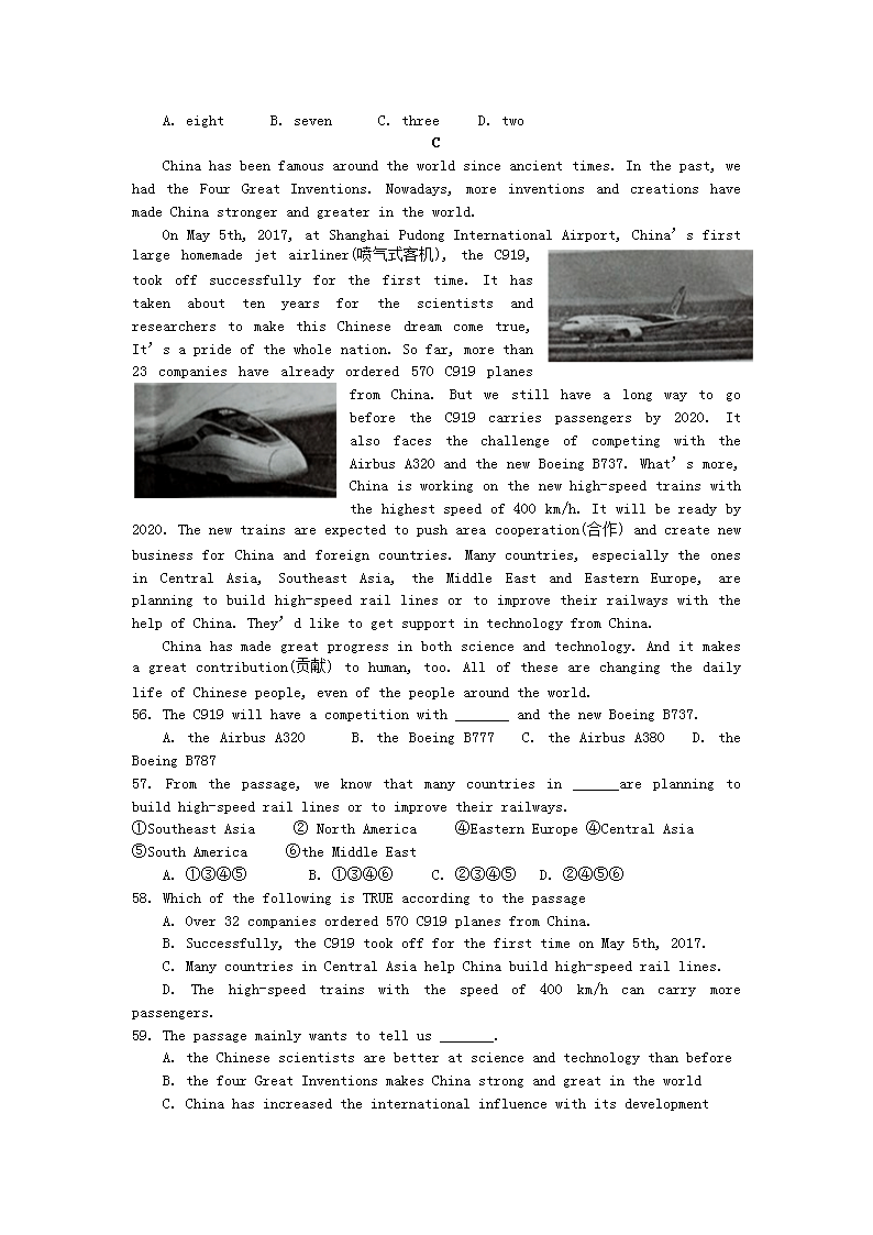 【文档名称】 2017重庆中考英语真题及答案(Word版).doc