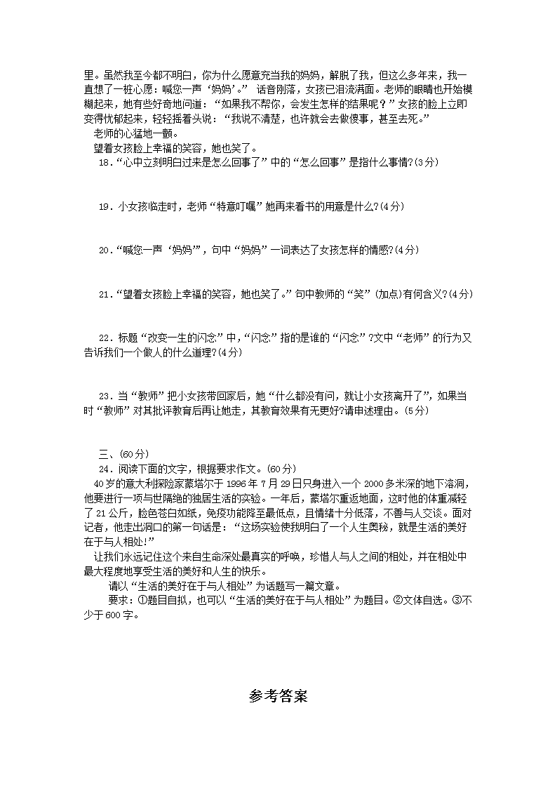 【文档预览】 无忧考网整理发布2004年福建省龙岩市中考语文真题及答案(Word版),前五页预览如下:
