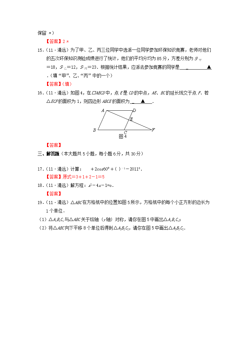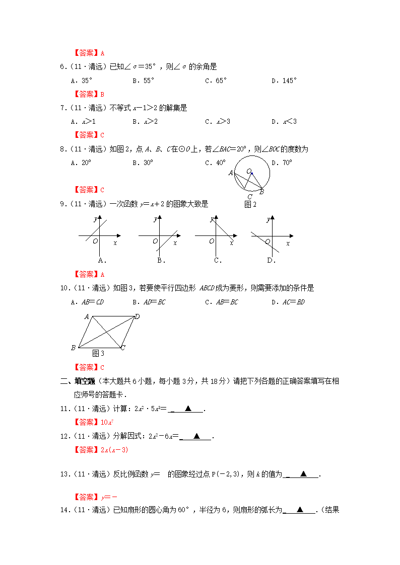 【文档名称】 2011年广东省清远市中考数学试题及答案(Word版).doc