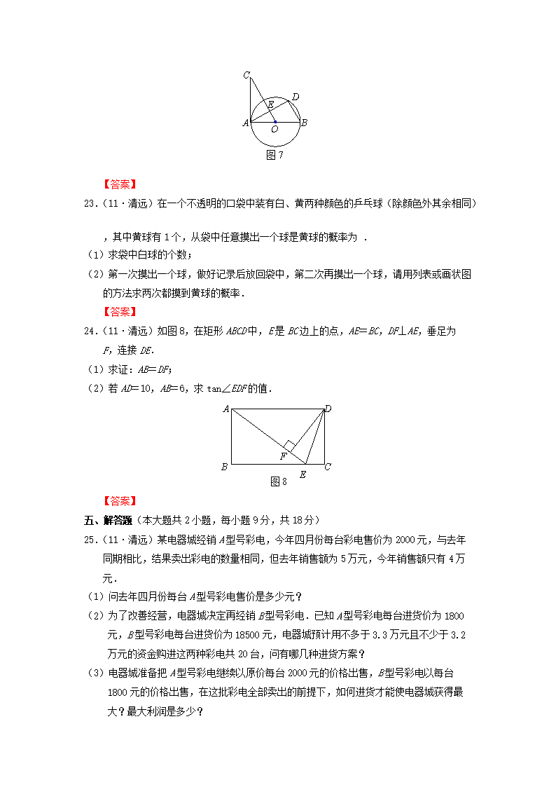 【文档预览】 无忧考网整理发布2011年广东省清远市中考数学试题及答案(Word版),前五页预览如下:
