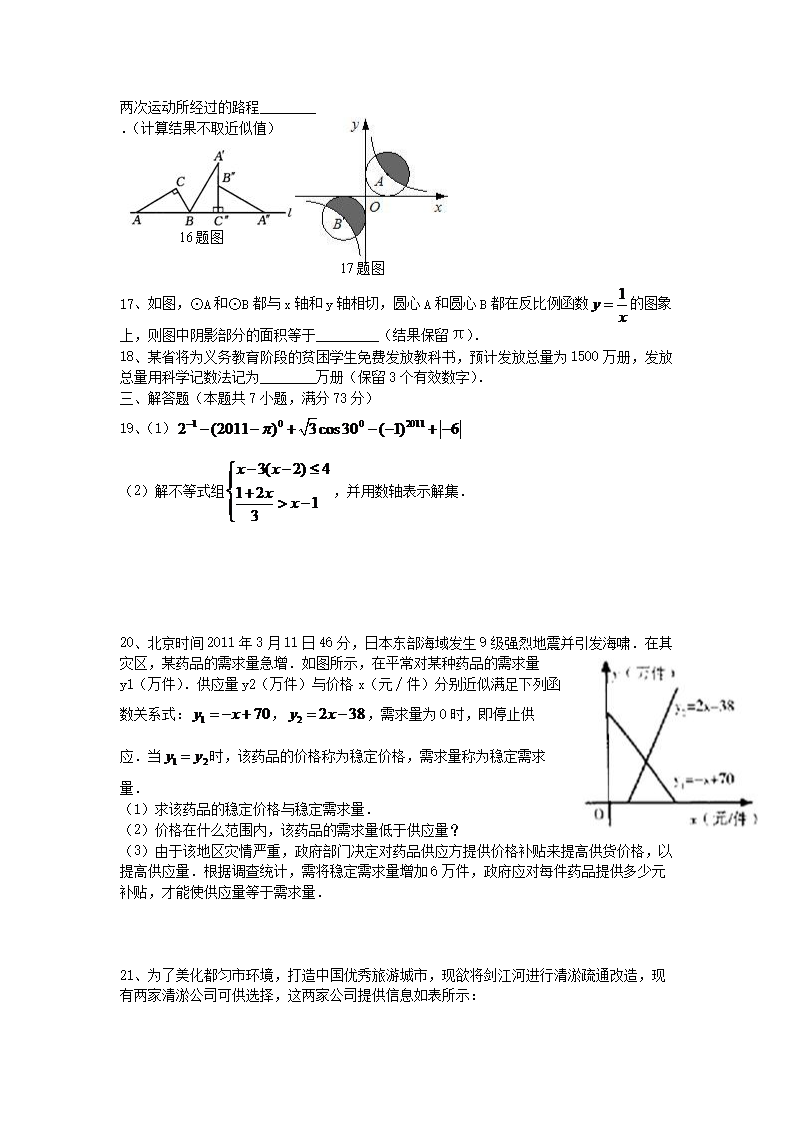 【文档预览】 无忧考网整理发布2011年贵州省黔南州中考数学试题及答案(Word版),前五页预览如下: