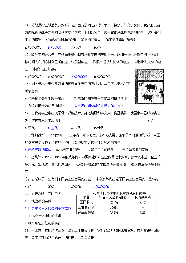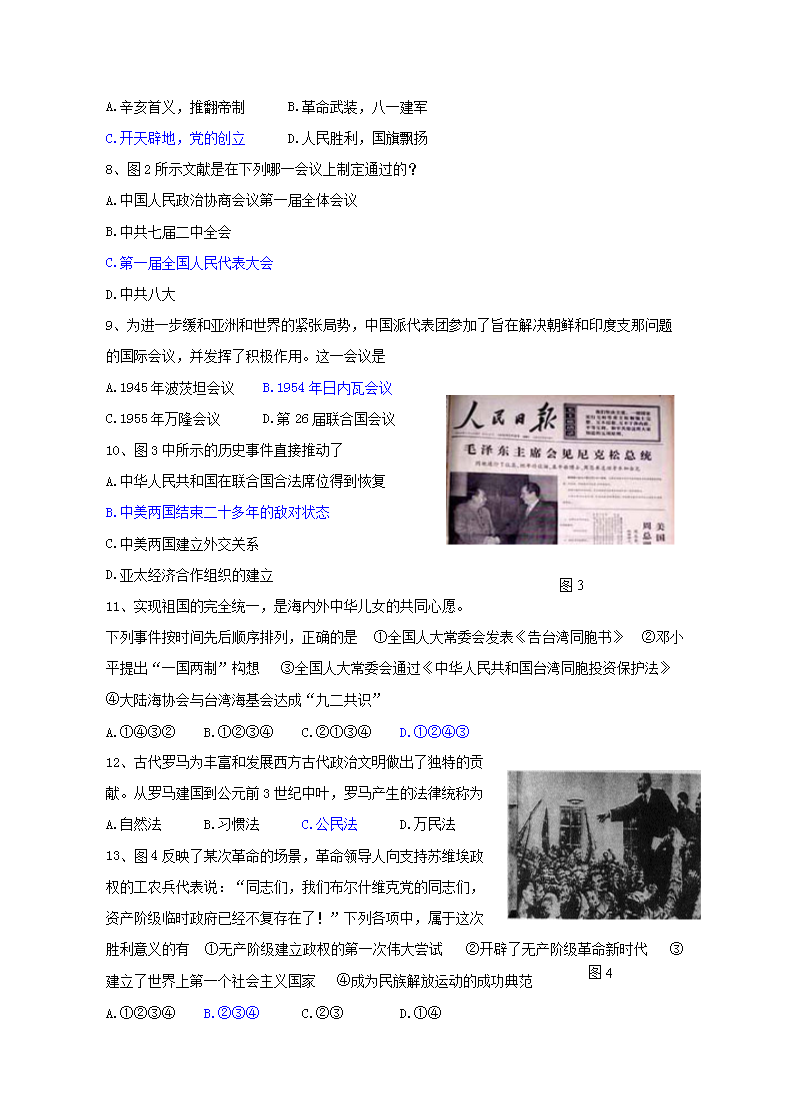 【文档预览】 无忧考网整理发布2010年浙江普通高中会考历史真题及答案(Word版),前五页预览如下: