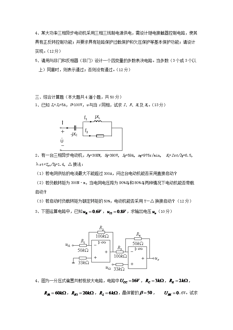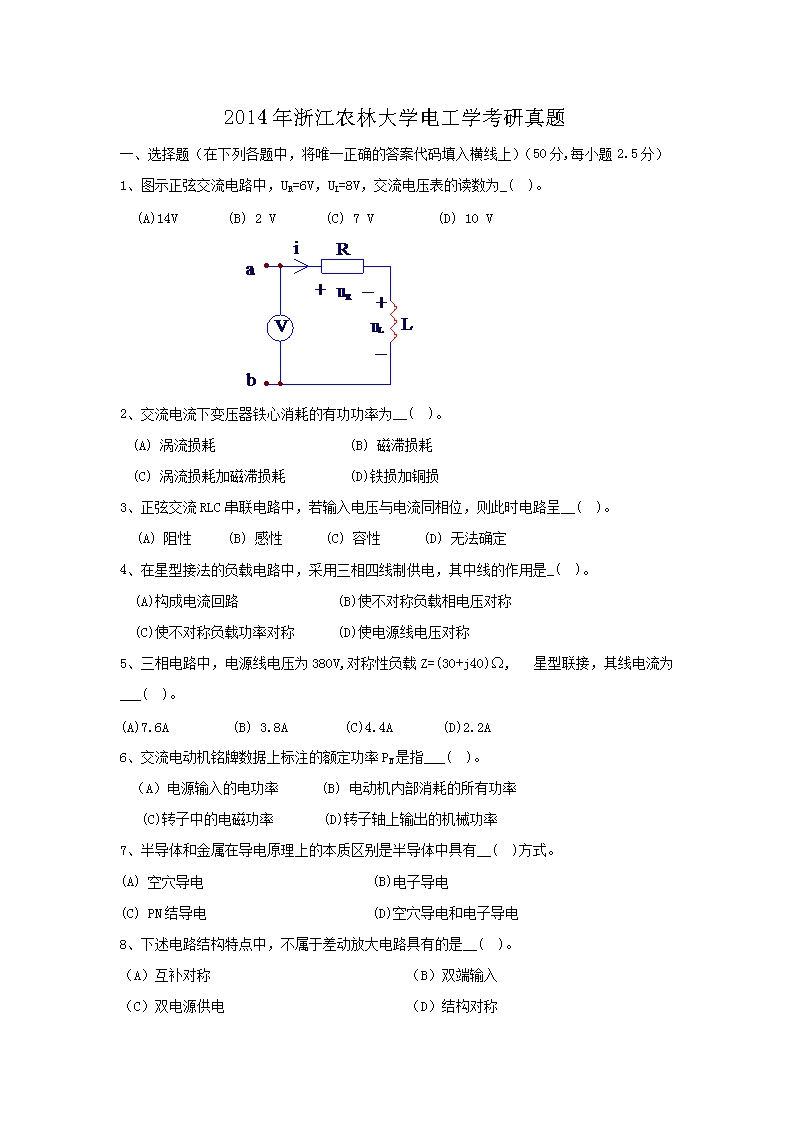 【文档名称】 2014年浙江农林大学电工学考研真题(Word版).doc