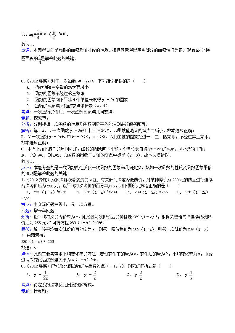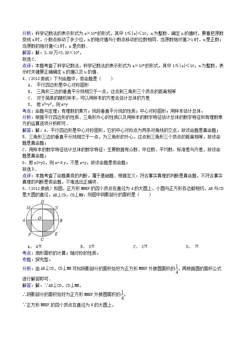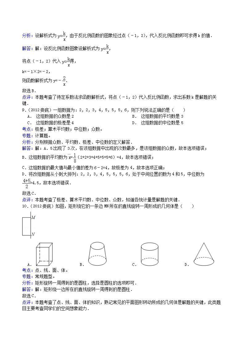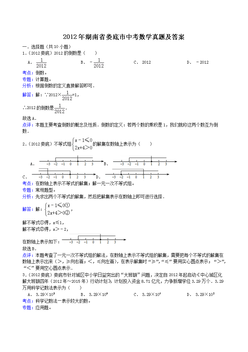 【文档名称】 2012年湖南省娄底市中考数学真题及答案(Word版).doc